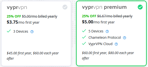 高级会员每月最多可获得 1 TB 的使用量,并可访问美国和欧洲的服务器。